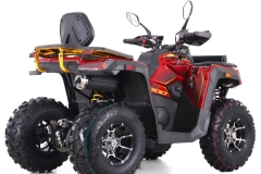 TYTAN to pojazd w wersji off-road, bez homologacji drogowej. Sercem tej maszyny jest czterosuwowy silnik LONCIN o pojemności 196,2cm3. Jednostki napędowe tej marki są bardzo dobrze znane szerokiej publiczności miłośników jazdy w terenie i po szosie – słyszysz LONCIN i wiesz, że mowa o niezawodności! Silnik wyposażony jest w wałek wyrównoważający oraz zaopatrzony w chłodnicę oleju. Model ten zestawiony jest na 10-calowych felgach aluminiowych. Pojazd posiada automatyczną skrzynię biegów z biegiem wstecznym (1+1). To, co jeszcze zasługuje w nim na szczególną uwagę to bogate wyposażenie, tj.: wyciągarka 2000lbs, podgrzewane manetki, gniazdo USB i zapalniczki, wyświetlacz LCD, pełne oświetlenie LED, listwa LED, hak, aluminiowa kierownica, system antydrganiowy, licznik motogodzin, handbary, oparcie, nakładki na bagażniki, oparcie