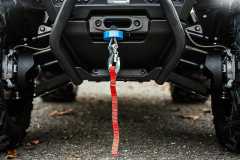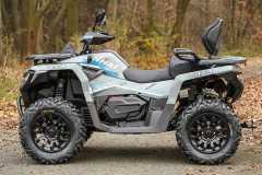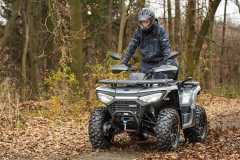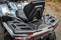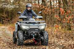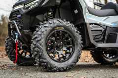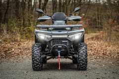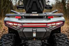 Elektryczna wyciągarka 3000 lbs z liną syntetyczną, elektryczne wspomaganie układu kierowniczego EPS, homologowane urządzenie holownicze, 14" aluminiowe felgi designerskie, markowe opony Bulldog 26", kompozytowe bagażniki z przodu i z tyłu, osłony klamek i dłoni, oświetlenie Full-LED, pełno kolorowy 7" wyświetlacz TFT, gniazdo 12 V, port USB, osobne podwyższone siedzenie pasażera z oparciem pleców, uchwyty o antypoślizgowej powierzchni.