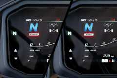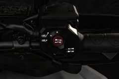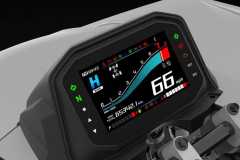 Pełno kolorowy 7" wyświetlacz TFT z automatycznym przełączaniem trybu dziennego i nocnego; funkcje: prędkościomierz, obrotomierz, wskaźnik poziomu paliwa, zegar, wskaźnik temperatury płynu chłodzącego, dzienny i całkowity licznik przebiegu, wskaźniki włączonego przełożenia, napędu i wybranego trybu jazdy, kontrolki ostrzegawcze.