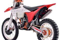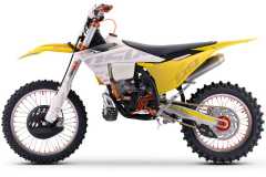 Motocykl wyposażony jest w zawieszenie FASTACE, zaprojektowane do jazdy crossowej i off-roadowej. Przednie amortyzatory upside-down oraz centralny tylny amortyzator skutecznie tłumią nierówności i zapewniają przewidywalne zachowanie motocykla w terenie.