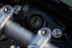Oprócz panelu TFT w kokpicie zintegrowane jest także gniazdo USB-A i USB-C. Za ich pomocą można na ładować telefon komórkowy lub podłączyć system nawigacji. Gniazda USB posiadają oczywiście wodoodporną gumową osłonę.