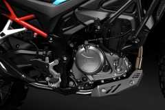Chłodzony cieczą, dwucylindrowy silnik DOHC o pojemności 349 cm³ oferuje 41 KM i 31,5 Nm, zapewniając płynną reakcję na gaz i charakterystyczne brzmienie wydechu. Stworzony na autostrady, podjazdy i lekki teren — wyważony, niezawodny i po prostu daje frajdę z jazdy. Zużycie paliwa na poziomie zaledwie 4,3 l/100 km przekłada się na świetny zasięg i niskie koszty eksploatacji — idealnie na długie przygody.