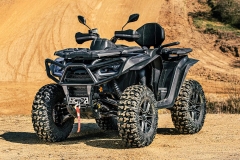 Elektryczne wspomaganie kierownicy, elektryczna wyciągarka 4500 lbs (nylon), szerokie wahacze, siedzisko z oparciem, hak holowniczy, kompozytowe bagażniki przód i tył, cyfrowy wielofunkcyjny wyświetlacz, oświetlenie Full-LED, przedni i tylny ochronny bumper, poszerzone błotniki, aluminiowe stopnie antypoślizgowe, 14" aluminiowe felgi, 27" opony, w pełni regulowane amortyzatory z progresywnymi sprężynami, osłony dłoni, Smart Commanding System (SCS) + aplikacja mobilna Smart-Moving App.