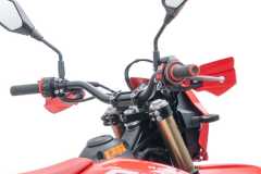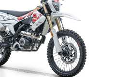 Odwrócone przednie zawieszenie o dużym skoku z podwójnym tłumieniem oraz tylne zawieszenie sprężynowo-olejowe skutecznie pochłaniają nierówności i podnoszą komfort jazdy. Osłony lag chronią widelec przed uderzeniami kamieni i odpryskami, dzięki czemu zawieszenie zachowuje płynność pracy nawet w trudnym terenie.