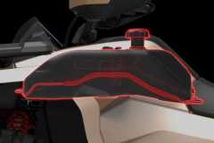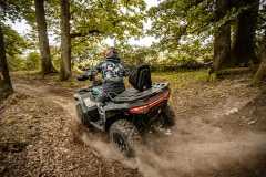 Przestronne i wygodne siedzenie zapewnia komfort obu użytkownikom. Pasażer ma ponadto do dyspozycji oparcie i praktyczne uchwyty dla bezpieczniejszej jazdy. W połączeniu ze skutecznym zawieszeniem i dużymi skokami quad radzi sobie także w wymagającym terenie.