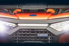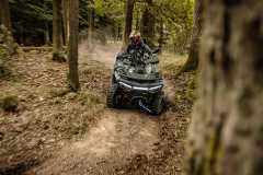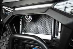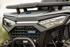 Elektryczna wyciągarka 3000 lbs z liną syntetyczną, homologowane urządzenie holownicze, 12" aluminiowe felgi designerskie, markowe opony Bulldog 25", kompozytowe bagażniki z przodu i z tyłu, osłony klamek i dłoni, oświetlenie Full-LED, pełno kolorowy 7" wyświetlacz TFT, osobne podwyższone siedzenie pasażera z oparciem pleców, uchwyty o antypoślizgowej powierzchni.